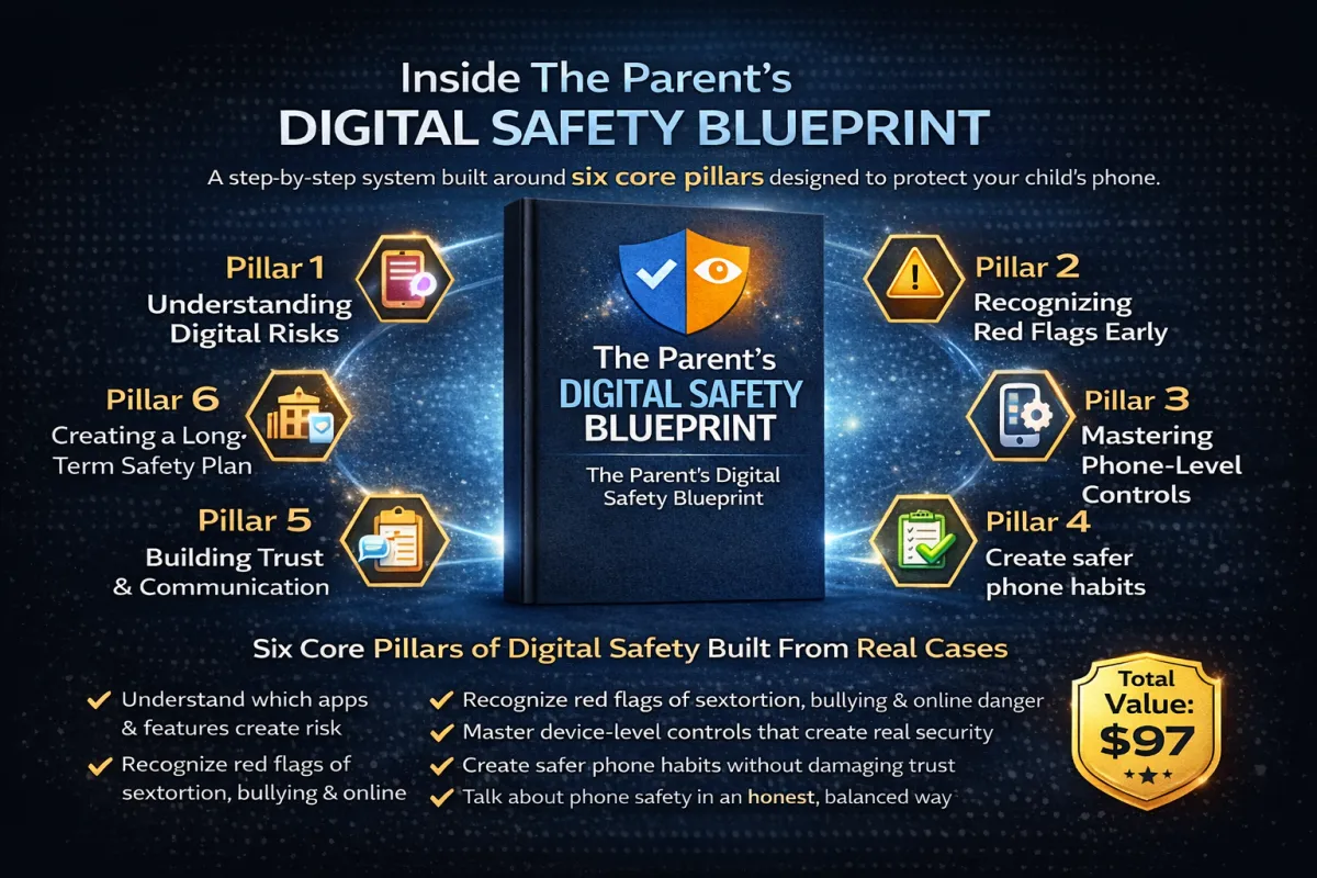 A guide designed to help parents protect their children in today’s digital world. It breaks down complex online risks—such as social media exposure, inappropriate content, sextortion, and online predators—into clear, manageable actions parents can take with confidence.