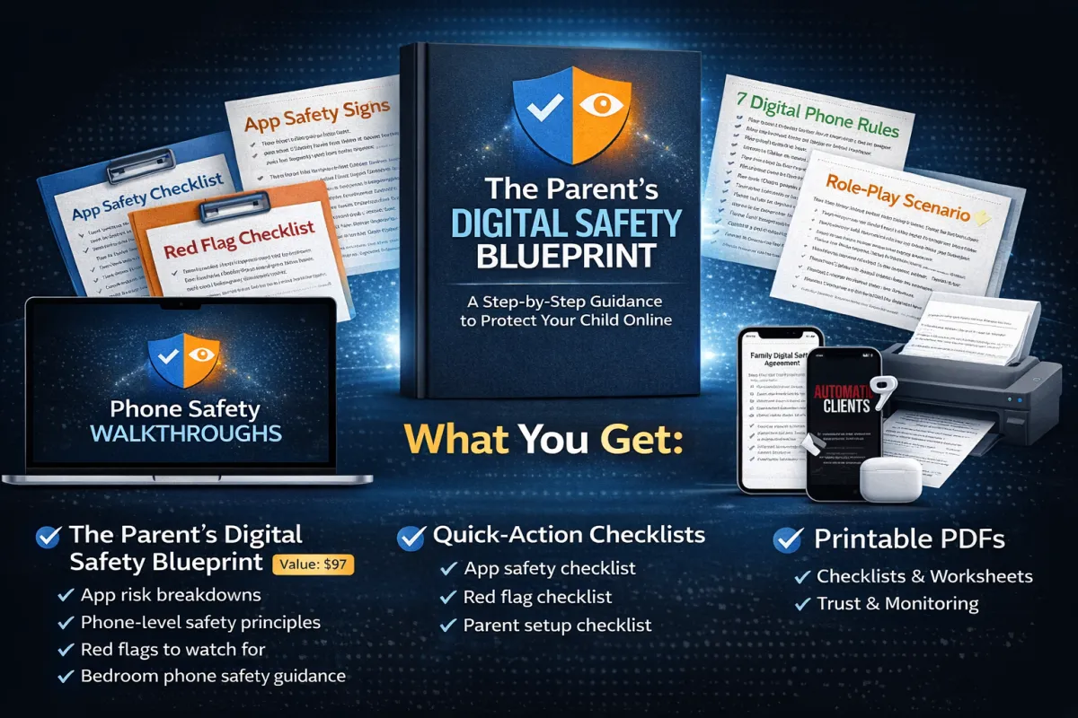 You’re getting a clear, guide for parents that explains today’s biggest phone risks and red flags, shows which settings actually matter, the best tools for monitoring, practical tools to implement immediately, device level controls and checklists (scripts and step-by-step instructions for the top 10 most dangerous apps and more hands on monitoring tool in the Toolkit version) to protect your child without fear, guesswork, or constant monitoring.